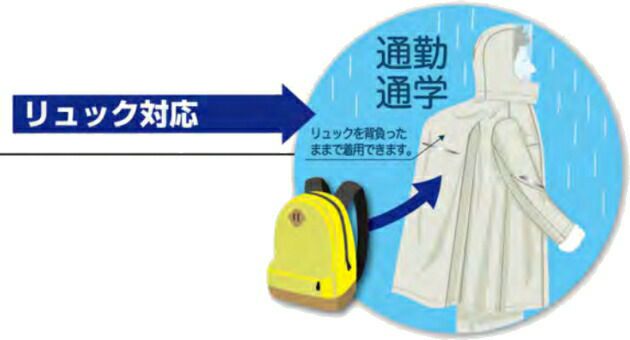 上着丈が少し長めなので、背負ったときに持ち上がって中の服が濡れてしまう心配もありません。