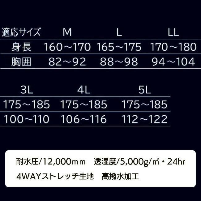 耐水圧/12,000mm 透湿度/5,000g/・24hr