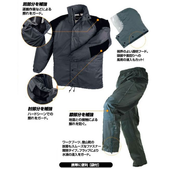 耐水圧 10000mm 透湿度 5000g/m2/24h 汗ムレを防ぐ 裏メッシュ仕様 【上下セット】 レインウェア イーグルクロス #3674
