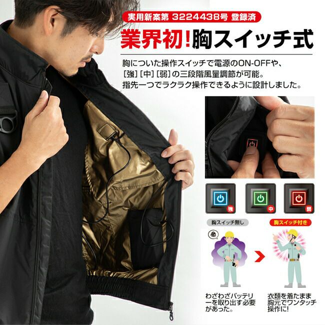 他の画像を見る 空調ベストの胸スイッチタイプが登場! BRAIN ブレイン 胸スイッチ 12V 空調ベスト 裏チタン 服のみ MESH-BR-1203-1 販売価格 ¥ 9,379 税込 詳細を見る お気に入りに登録する