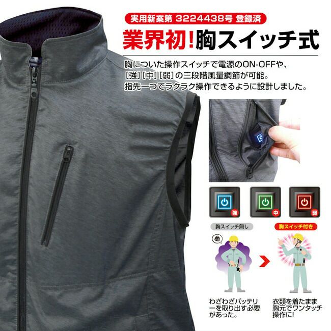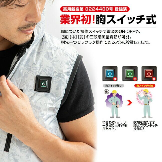 他の画像を見る 空調ベストの胸スイッチタイプが登場! BRAIN ブレイン 胸スイッチ 12V空調ベスト 裏チタン 服のみ MESH-BR-1202-1 販売価格 ¥ 9,379 税込 詳細を見る お気に入りに登録する