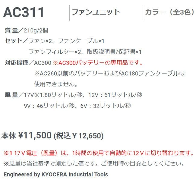 他の画像を見る 2021モデル ファン 2個 と バッテリー セット が 付属 【ファン & バッテリー セット】バートル BURTLE 空調服 【AC1156 + AC270 + AC271】半袖タイプ フード付き 販売価格 ¥ 20,281 税込 〜 販売価格 ¥ 税込 在庫切れ 詳細を見る お気に入りに登録する