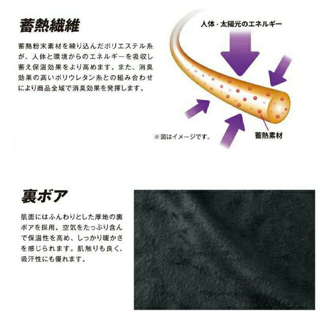 さらに蓄熱繊維を使用しており、体温を効率的にキープ。