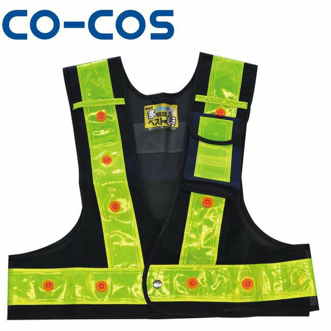安全帯の工具を自由に出し入れ出来るショート丈。 コーコス 3012701 LED 多機能安全ベスト光るんです!( ショート丈 )
