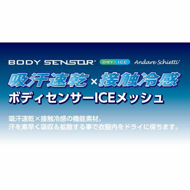 吸汗速乾×接触冷感の機能素材。汗を素早く吸収&拡散することで衣服内をドライに保ちます。