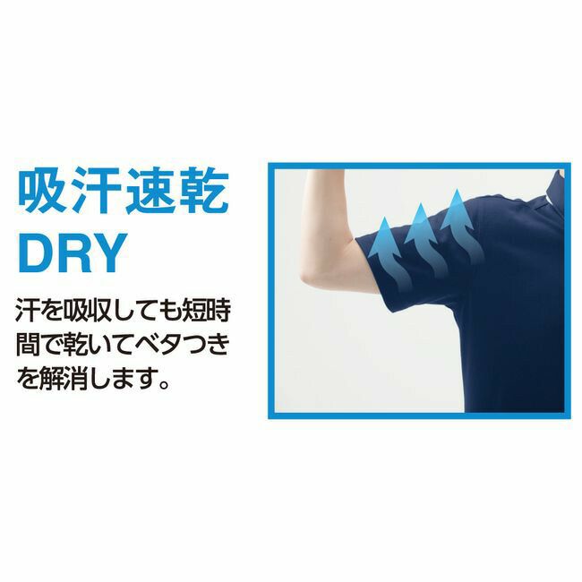 吸汗速乾×接触冷感の機能素材。汗を素早く吸収&拡散することで衣服内をドライに保ちます。
