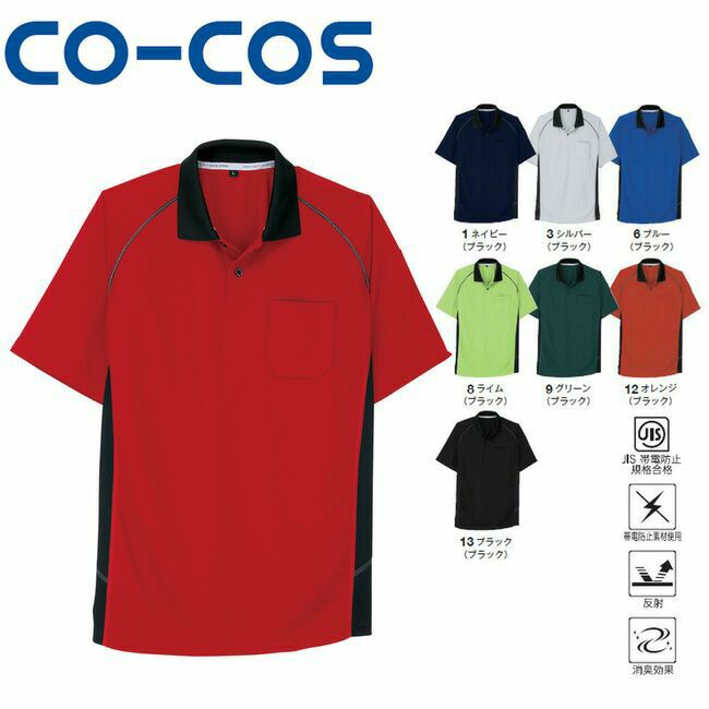 反射素材を使い、暗闇でも視認性アップ。 危険の多い夜間、屋外で働く作業者の安全性確保にも有効的。 コーコス A-3377 半袖ポロシャツ JIS 帯電防止 反射 消臭