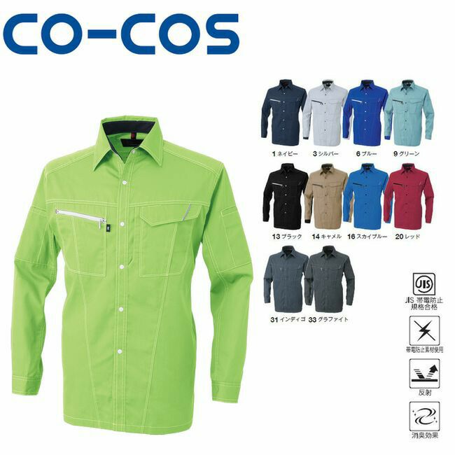 カラー&サイズ&機能を豊富に展開。ソフトからハードまで他と「カブらない」コーディネートが可能。 コーコス A-4078 長袖シャツ JIS 帯電防止 反射 消臭