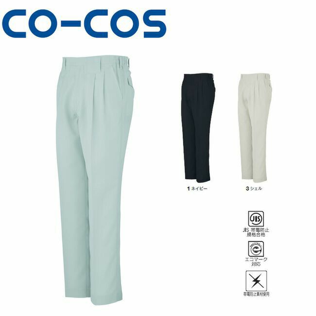 カーボンオフセット対応。一着一着がCO2削減へ繋がる。機能にも優れた次世代ユニフォーム。 AS-523 エコ・製品制電ツータックスラックス(脇シャーリング) JIS エコマーク 帯電防止