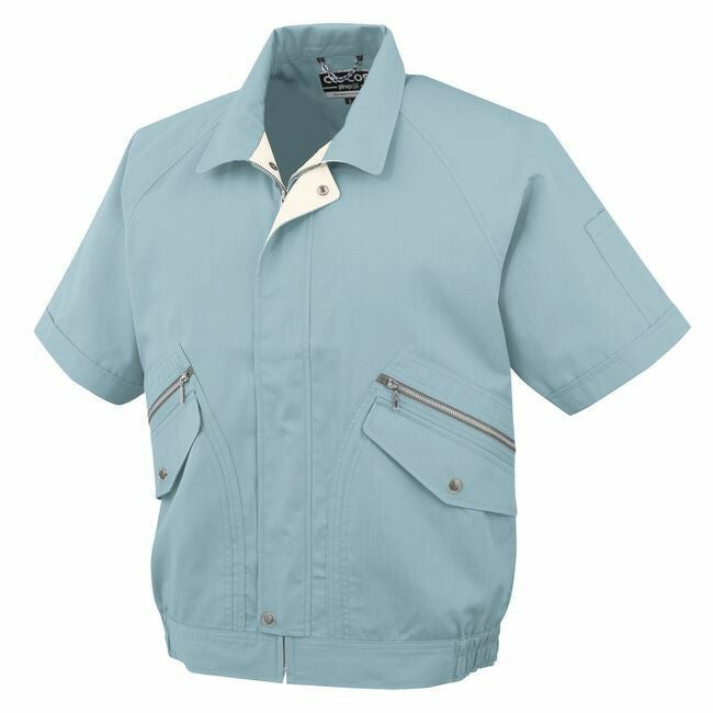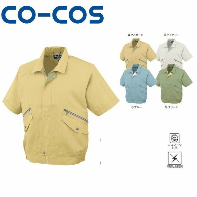 ソフトなカラーで軽量感・清涼感をアピール。 衿裏やカフス裏の配色デザインがアクセント。 コーコス P-8890 エコ半袖ブルゾン エコマーク 帯電防止
