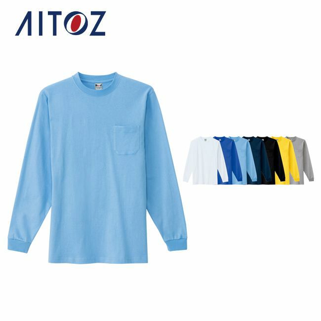 吸湿性、着心地が抜群の綿100%Tシャツ。 AZ-10530 アイトス 長袖Tシャツ(ポケット付)(男女兼用)