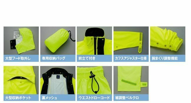 しなやかで強いナイロン透湿素材のレインウエア。