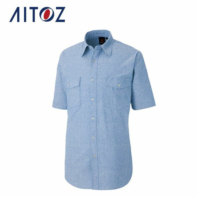 肌触りの良い綿素材、着心地抜群のダンガリーシャツ。 AZ-7612 アイトス 半袖ダンガリーシャツ(男女兼用)