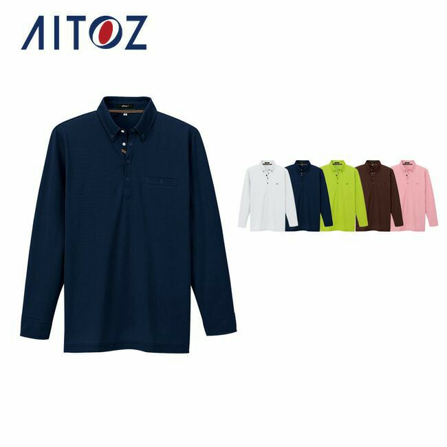 部屋干しに適した素材で清潔・快適。 AZ-7665 アイトス 部屋干しボタンダウン長袖ポロシャツ(男女兼用)