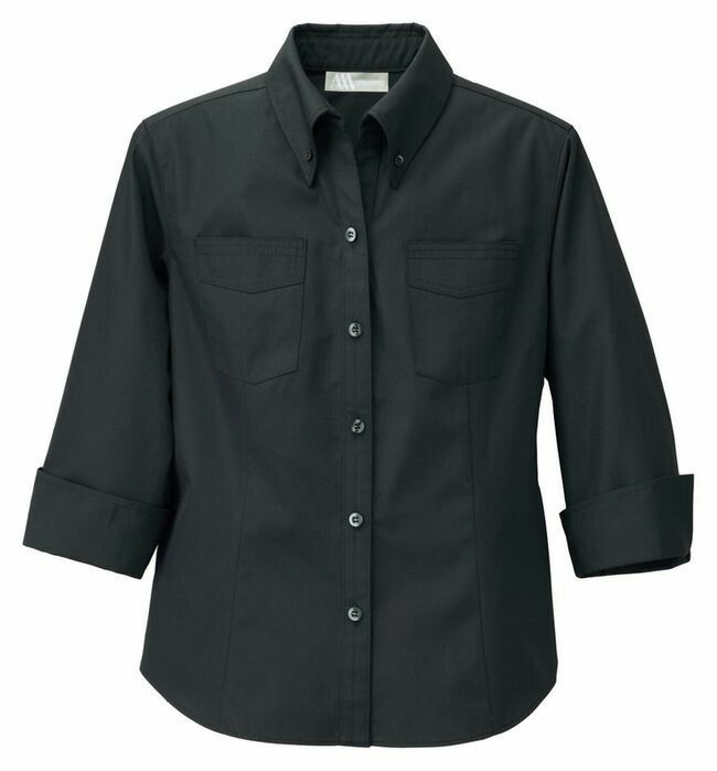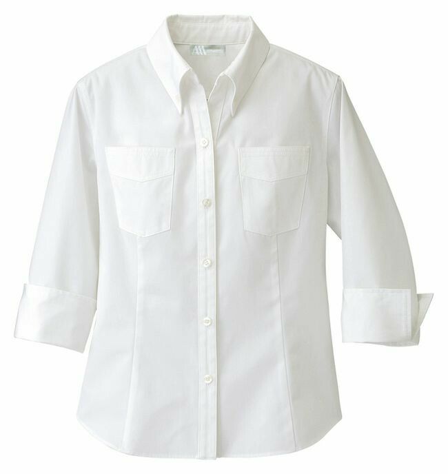 オープンカラーのボタンダウンシャツ。 AZ-861204 アイトス レディース七分袖ボタンダウンシャツ