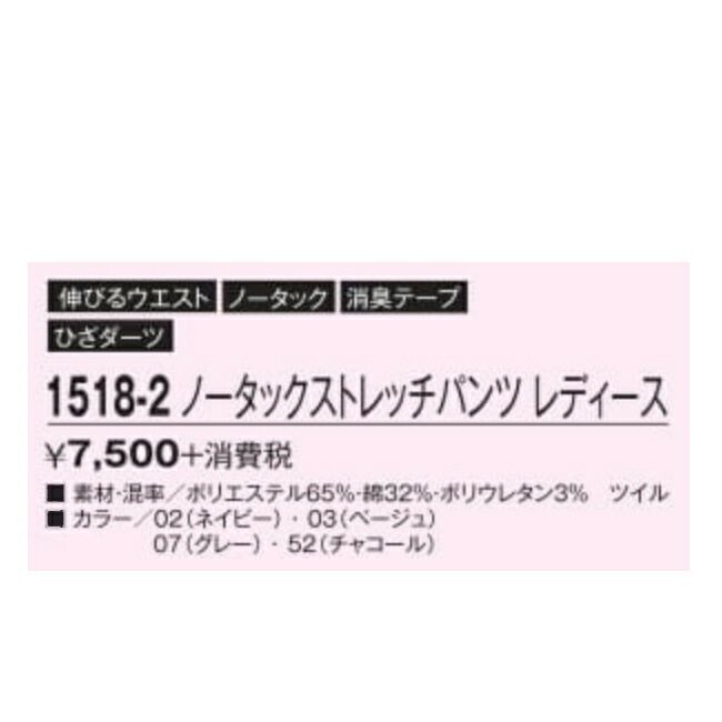 アタックベース ATACK BASE 1518-2 ノータックストレッチパンツ レディース 消臭テープ 制電