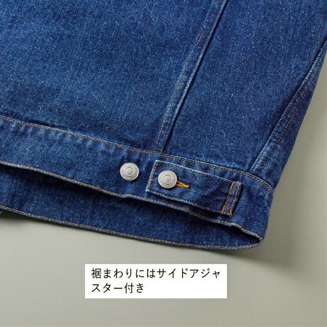 チェーンステッチや裾周りのサイドアジャスター、サイドのポケットなど、人気のデニム ジャケットのディテールを余すことなく踏襲した本格仕様。