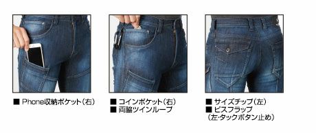 素材/ストレッチデニム(伸長率25%)、製品洗い、ブラスト加工