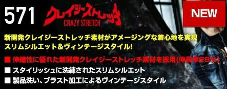 素材/ストレッチデニム(伸長率28%)、製品洗いブラスト加工