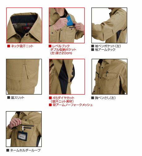 素材/ドビークロス(校倉構造)、点接触清涼素材、吸汗速乾、制電ケア設計