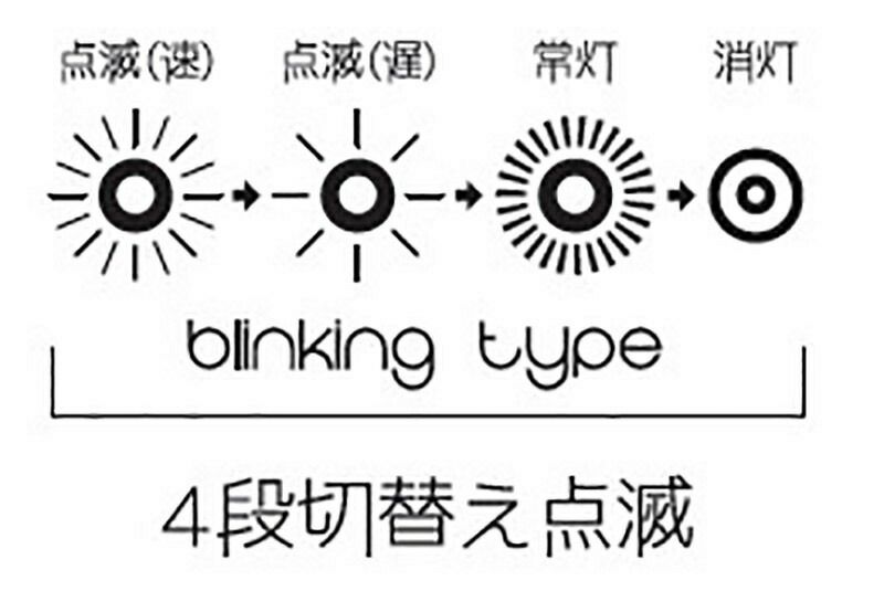 4段階(点滅[速]、点滅[遅]、点灯、消灯)の切替え点滅が可能なLED誘導棒ロングタイプ。