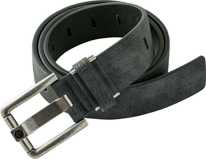 デザイン性のある平べったいピンと、ベルト本体に並ぶ穴が特徴。