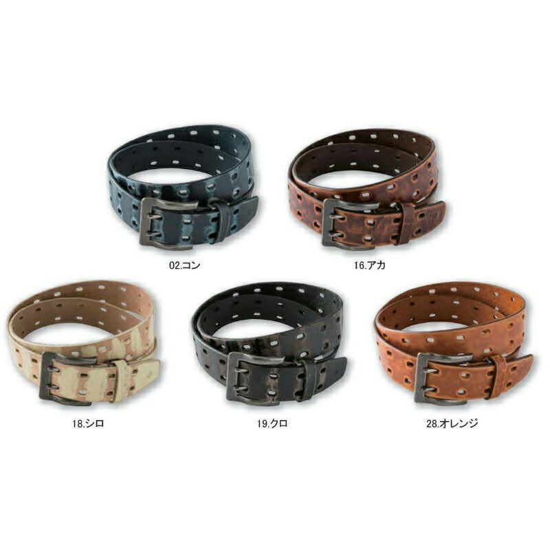 数多くあいたベルト穴もデザインの一部となってこのベルトの特徴となっています。