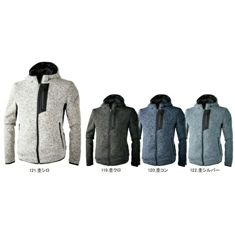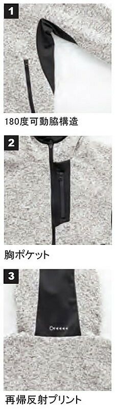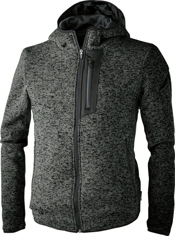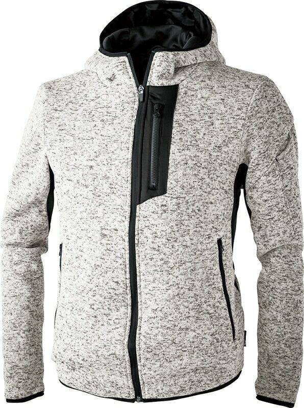 帯電防止機能を持つ杢調ローゲージニットを使用したリフレクションウォームパーカー。