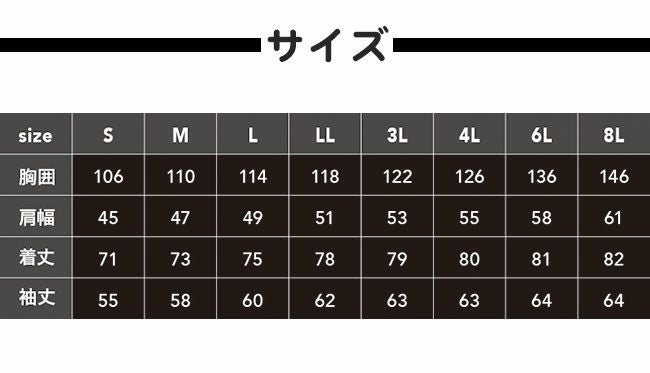 サイズ:S、M、L、LL、3L、4L、6L、8L