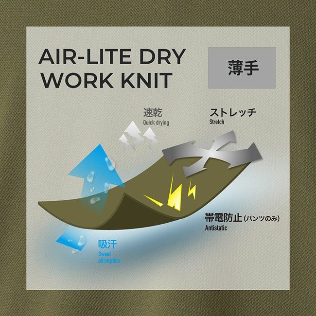 ストレッチ性を生かした動きやすいデザインで、あらゆる作業シーンに対応。