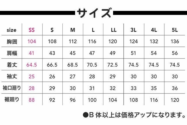 サイズ:SS、S、M、L、LL、3L、4L、5L