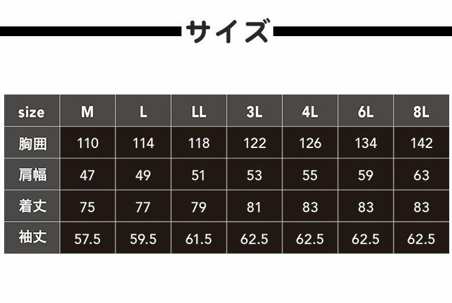 サイズ:M、L、LL、3L、4L、6L、8L
