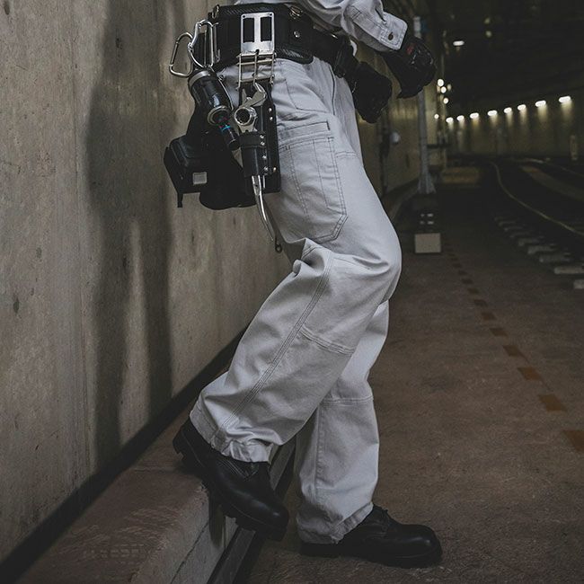 雰囲気を高めるマットな風合いと伸縮性を持った上質な素材使い。バイオ加工を施しソフトな肌触り、スタイリッシュなデザイン、すっきりとスマートなシルエットが印象的。120%ストレッチがアクティブな動きをアシストし、細身スタイルでもストレスのない着用感の良さが光る。企業ユニフォームを視野にカーキにグレー、ネイビーブラックを取り入れたカラーバリエーション。オリジナル刻印が施されたボタン、リベット。