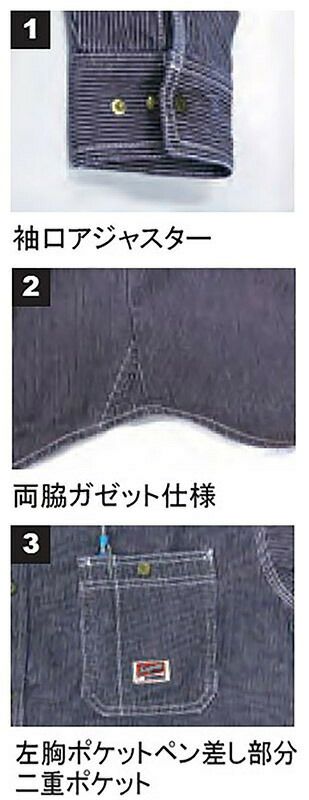 定番のヒッコリー柄は汚れが目立ちづらくワークに最適でアメリカンテイストな商品となっています。