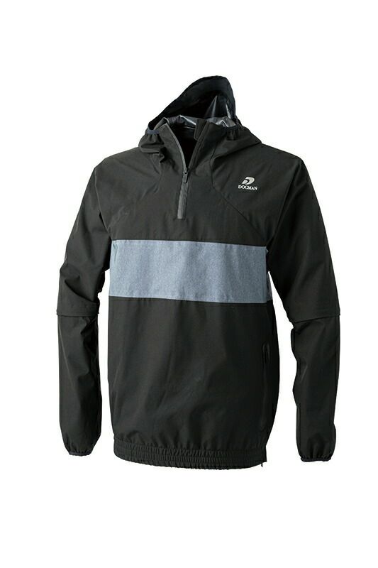フルハーネス対応、急速ベンチレーションといった使い方もできる多用途ポケット、やや長めに設定した着丈、フード調整可能アジャスターコード、フードツバなどを備える。
