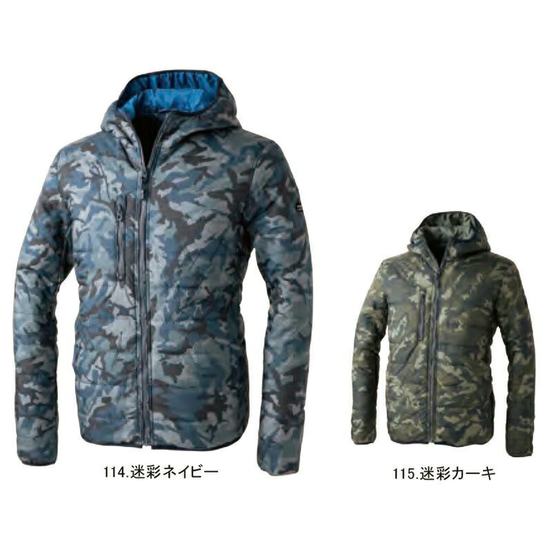 軽量中わた入りで保温性が高く、さらりと着れるライトアウターウェア。人気の高い迷彩カーキ・迷彩ネイビーを採用。