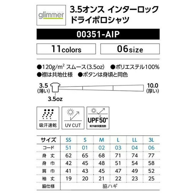 機能性に優れた着心地の良いドライポロシャツ 3.5オンス インターロック ドライ ポロシャツ glimmer グリマー 00351