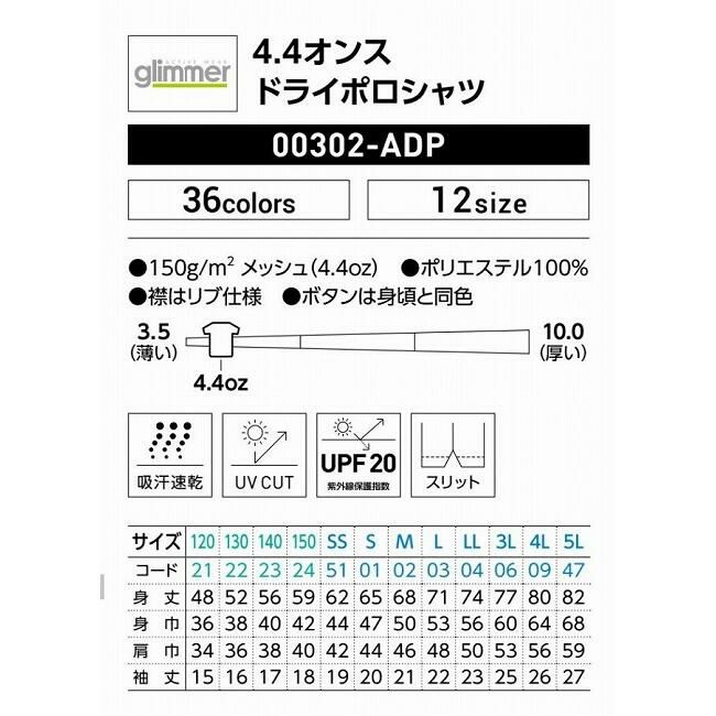 他の画像を見る 真面目な見た目と快適な着用感がひとつに 4.4オンス ドライポロシャツ glimmer グリマー 00302 販売価格 ¥ 819 税込 〜 販売価格 ¥ 税込 詳細を見る お気に入りに登録する