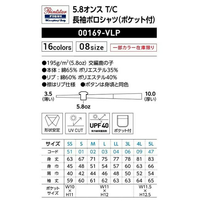 他の画像を見る ポロシャツシリーズの定番を長袖仕様に 5.8オンス TC 長袖ポロシャツ(ポケット付) Printstar プリントスター 00169 販売価格 ¥ 1,448 税込 〜 販売価格 ¥ 税込 詳細を見る お気に入りに登録する