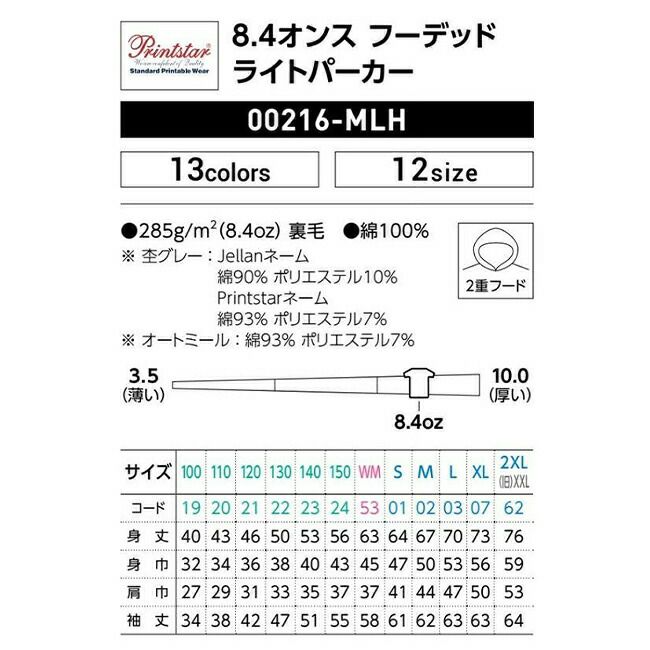 他の画像を見る ファッショナブルに着こなせる2重フード 8.4オンス ジップアップライトパーカー Printstar プリントスター 00217 販売価格 ¥ 2,726 税込 〜 販売価格 ¥ 税込 詳細を見る お気に入りに登録する