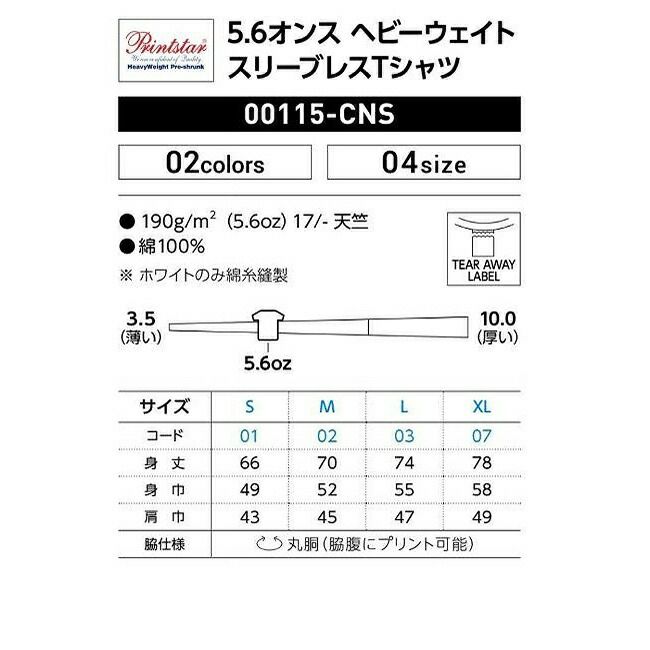 他の画像を見る アクティブにもファッショナブルにもフィット広すぎないアームホールがスタイリッシュ 5.6オンス ヘビーウェイト スリーブレス Tシャツ Printstar プリントスター 00115 定価 ¥ 1,210 販売価格 ¥ 734 税込 在庫切れ カートに入れる お気に入りに登録する