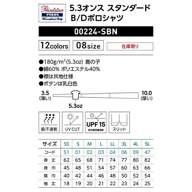 他の画像を見る 定番ボタンダウンポロシャツ 5.3オンス スタンダード ボタンダウン ポロシャツ Printstar プリントスター 00224 販売価格 ¥ 1,039 税込 〜 販売価格 ¥ 税込 在庫切れ 詳細を見る お気に入りに登録する