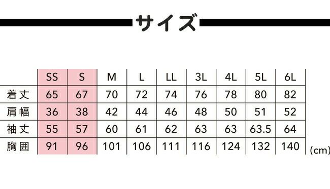 サイズ:SS,S,M,L,LL,3L,4L,5L,6L