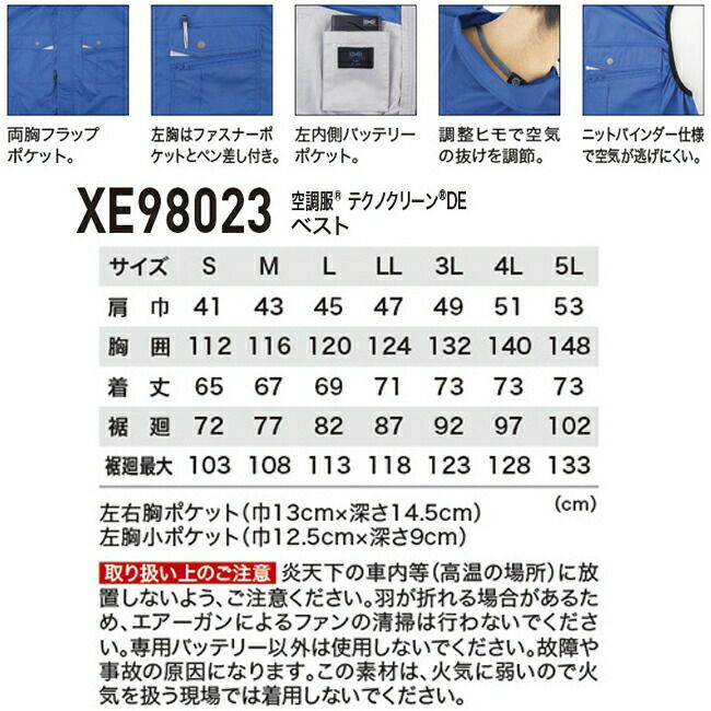 XEBEC ジーベック T100%テクノクリーンDEベスト XE98023
