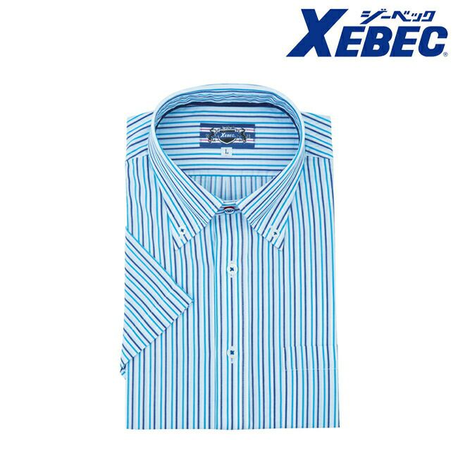 ジーベックのクールビズに綿高混率素材に製品洗いをかけたナチュラルな風合いの爽やかマルチカラーストライプシャツ。