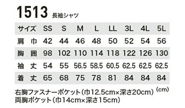XEBEC ジーベック ウラメンストレッチナガソデシャツ 1513