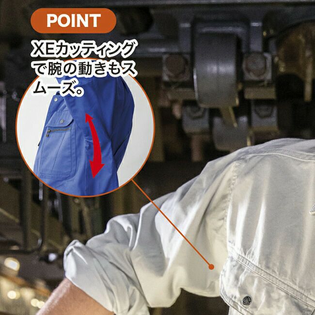 綿100%サマーツイル生地を使用した厚手の生地ながら動きやすい定番作業服