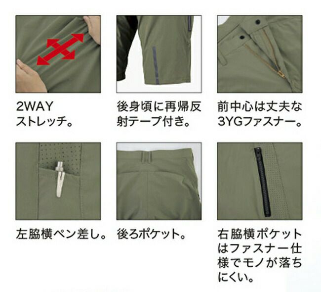 接触冷感性の高いナイロンストレッチとパンチング加工を施した同素材の切り替えにより、涼しく動き易いワークウェアシリーズ