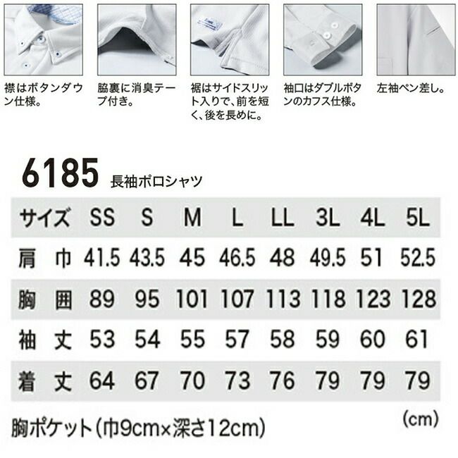 XEBEC ジーベック 長袖ポロシャツ 6185