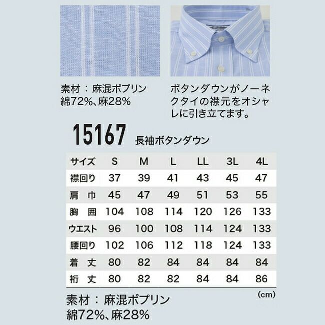 他の画像を見る 清涼感のあるサックスカラーのドビー綾目柄の生地を使用 XEBEC ジーベック 長袖ボタンダウン 15159 定価 ¥ 10,230 販売価格 ¥ 5,848 税込 カートに入れる お気に入りに登録する
